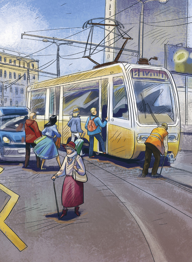 – Надо же, какие красивые тут ездят трамваи! Дядя Кузя, а если конку везли лошади, то кто везёт трамвай?