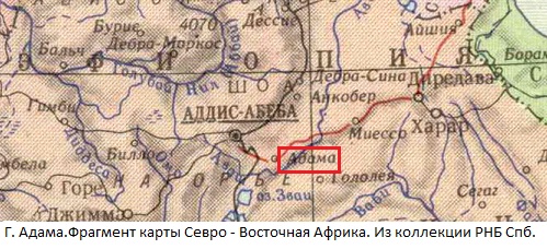 Город Назрет (Назарет), он же Адама, находиться недалеко от места, где расположена столица Эфиопии Аддис – Абеба. См. карту ниже. В настоящее время считается, что своё имя он получил по воле императора Эфиопии Хайле Селассие I после Второй мировой войны «в честь библейского Назарета». В 2000 году городу было возвращено традиционное название Адама, однако название «Назрет» по-прежнему широко используется. Я сомневаюсь в мотивах монаршей воли. Представитель древней династии знал подлинную историю своей страны лучше современных толкователей, но заниматься опровержением устоявшихся и непоколебимых мифов главе государства означало бы вызвать невероятных размеров международный скандал, чреватый моральными, политическими и экономическими потерями для страны. Поэтому подлинное название города было возвращено Хайле Селассие I «в честь библейского…» города.