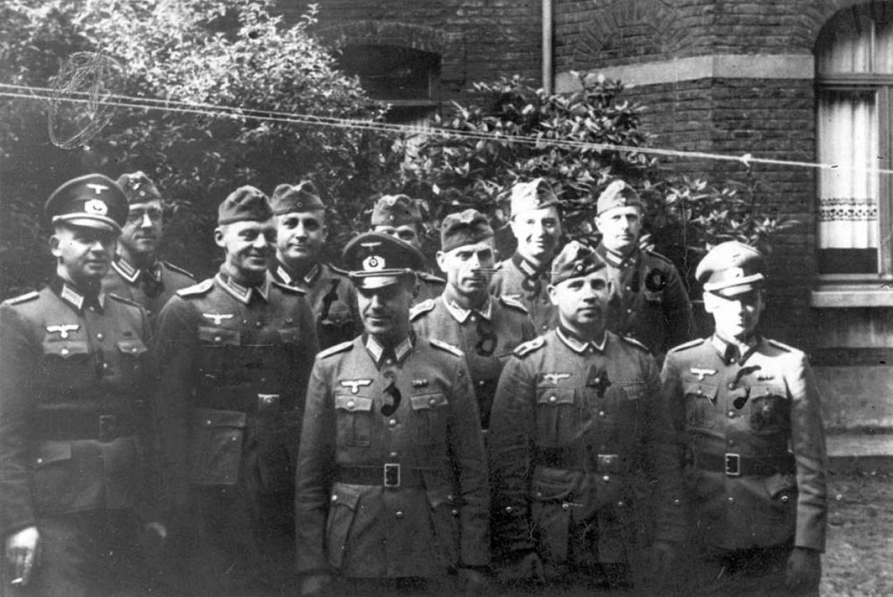 Несмотря на «благообразный» облик этих субъектов, перед вами предстают палачи, руки которых обагрены кровью тысячами жителей Краснодара и Краснодарского края. (Советская контрразведка планомерно занималась поисками и изобличении этих военных преступников. На фотографии вы видите порядковые номера, написанные от руки. Они были поставлены сотрудниками «СМЕРШ» при опознании фигурантов).