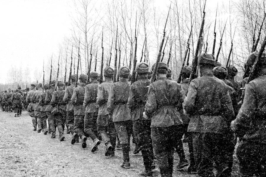 Так курсанты поднятые по тревоге уходили на Сталинградский фронт. Почти все они погибнут в бою, но танки Готта к Краснодару не пойдут (не позиционированный снимок)