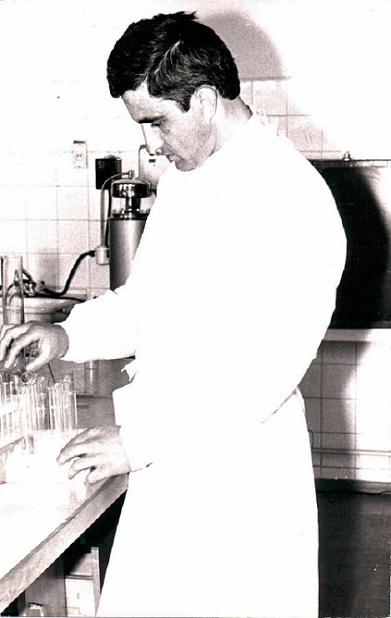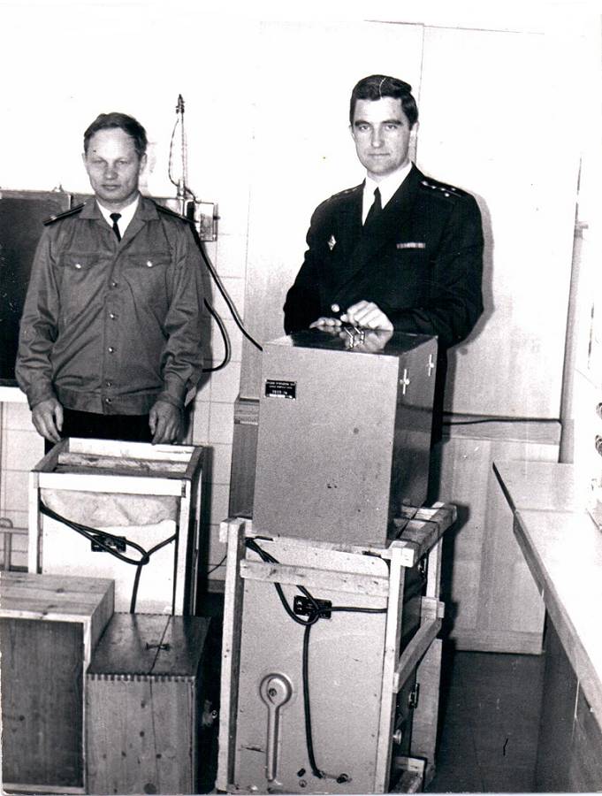 Фото 8. Адъюнкт кафедры военно-морской и радиационной гигиены капитан медицинской службы Жолус Б.И. проводит исследования (1976).