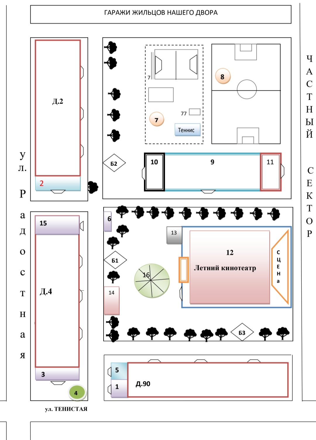 № 7- детская площадка с теннисным столом, качелями и песочницей.