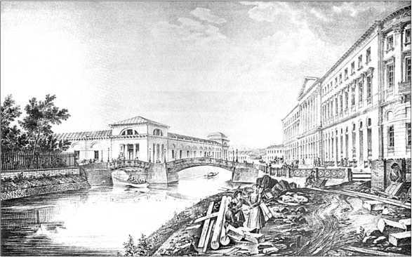 Беггров К.П. Вид моста, построенного через Мойку и устье Екатеринского канала. 1828 г.