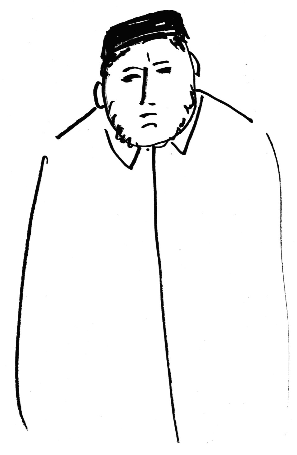 Неуверенный, неприкаянныйдобавим:как ошпаренныйстоит уу – какой грозный дядясколько в нем благодати —один живот чего стоита в сущности – ребеноккрутит белкамии не понимает:сюда не пускают