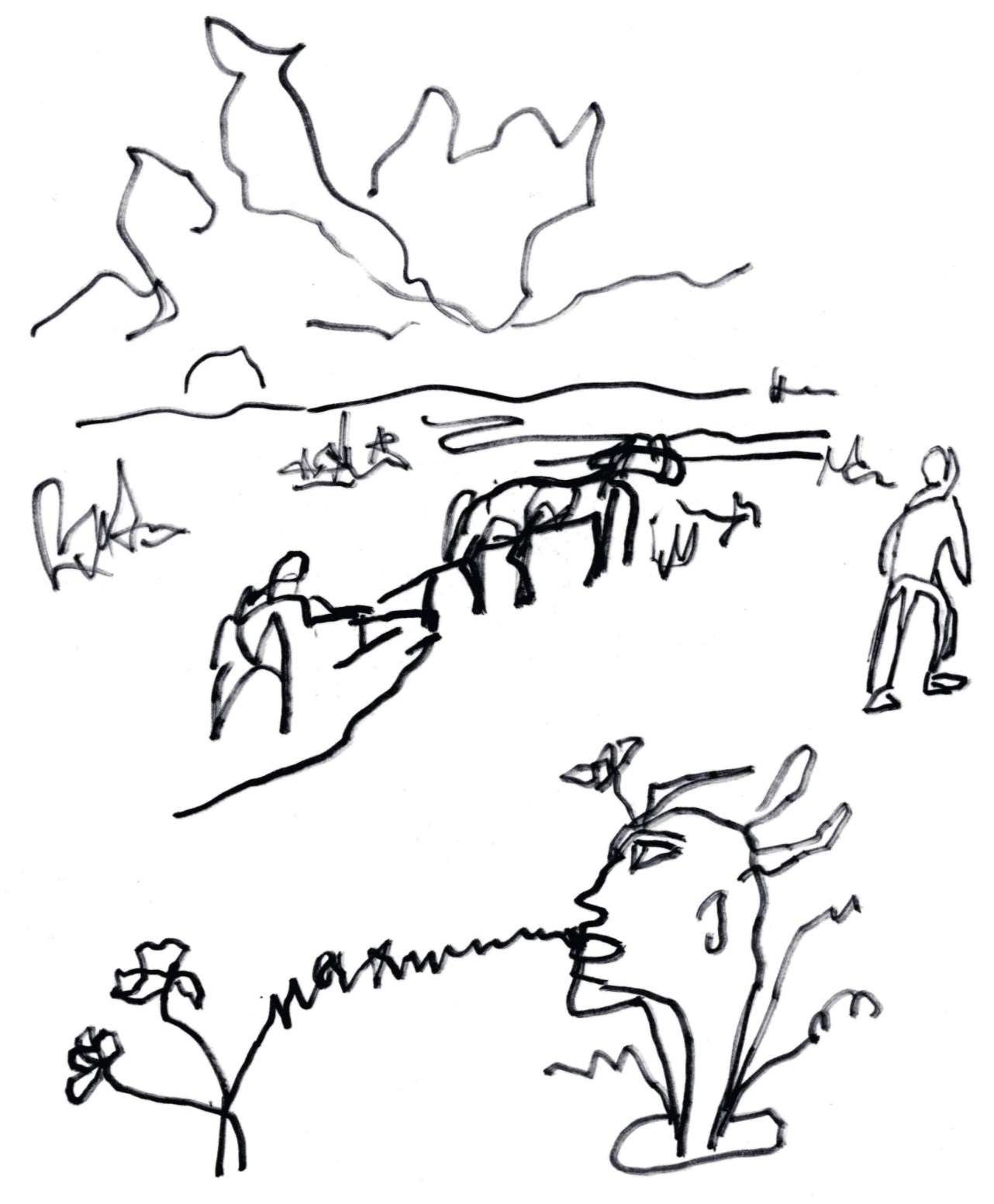 Ночью волкотогнал жеребенкаот стреноженной кобылицыи задралобычная историяДавидулыбается улыбкойгрустного человекаи объясняеткак найти развалины крепостив горахДавид —ветеран войнымаленькой страныпришпиленной к морю –доит коровуживотные здесьходят с колокольчикоми небо звенит —вперед!