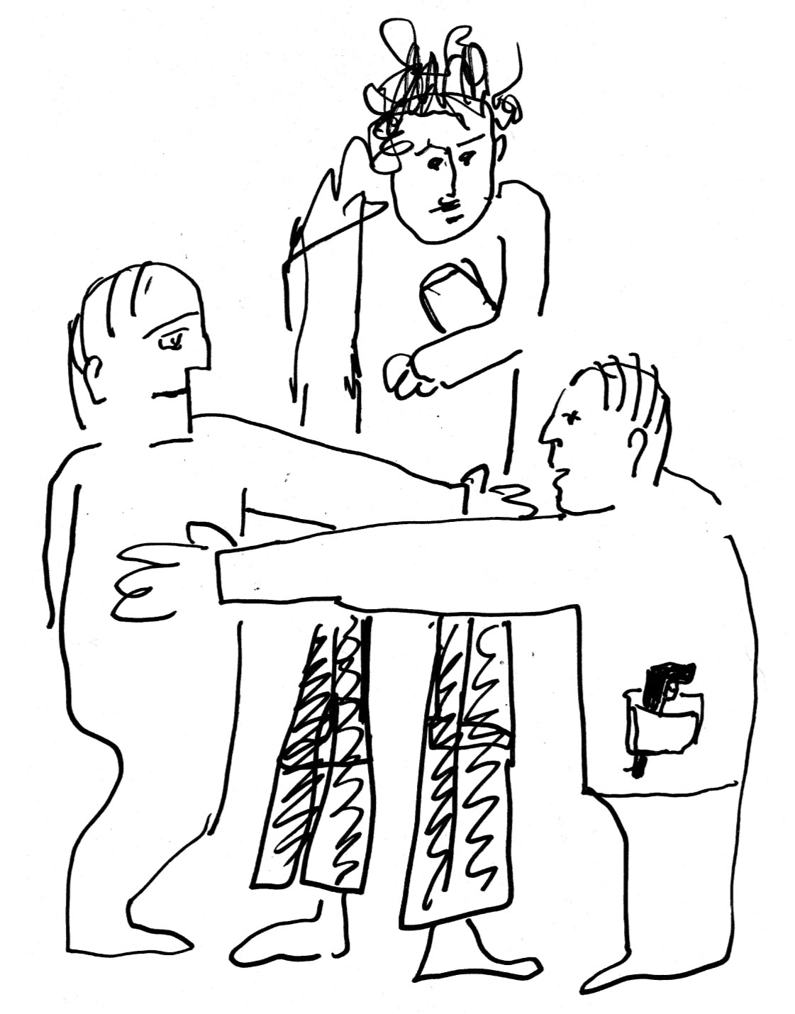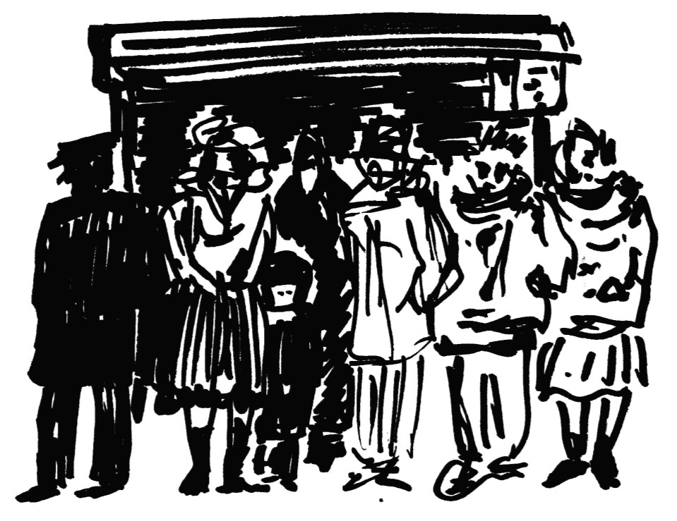 В берете синем у крыльцастоит товарищ без лицаи шепчет громко: «Подлецы!»Уснула очередь за ним.А два могучих продавцав ответ кивают без концаи повторяют: «Подлецы!»И выпускают дым.Душистый дым от сигарет.Товарищ – да, товарищ – нет.