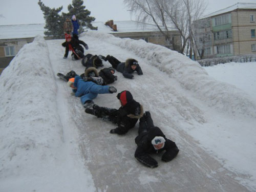 Витька говорит: «А давай на горку забегать со стороны льда, кто дальше поднимется». Витька сделал несколько неудачных попыток и сумел подняться только до середины горки. У меня тоже первых две попытки забежать на горку по льду были не удачными, а третья – совсем плохая. Добежав до середины горки, я поскользнулся, ноги поехали назад и я со всего маха «ударился» головой о лёд.