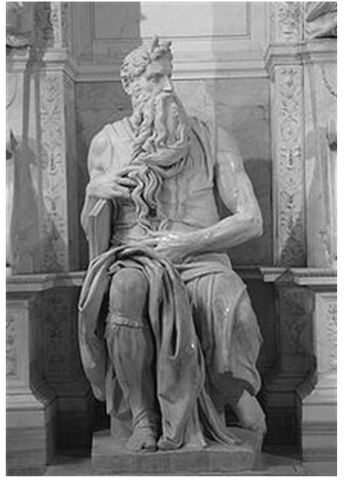Мраморная статуя Моисея высотой 2 м 35 см работы Микеланджело изображает колоссальную духовную силу ветхозаветного пророка. Оригинал статуи находится в базилике Сан-Пьетро-ин-Винколи, Рим.