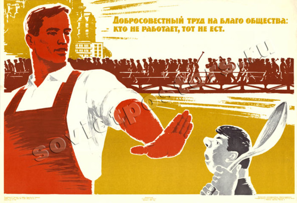 Утверждалось, что величественное здание коммунизма воздвигается упорным трудом советского народа – рабочего класса, крестьянства, интеллигенции. Чем успешнее их труд, тем ближе осуществление великой цели – построение коммунистического общества.
