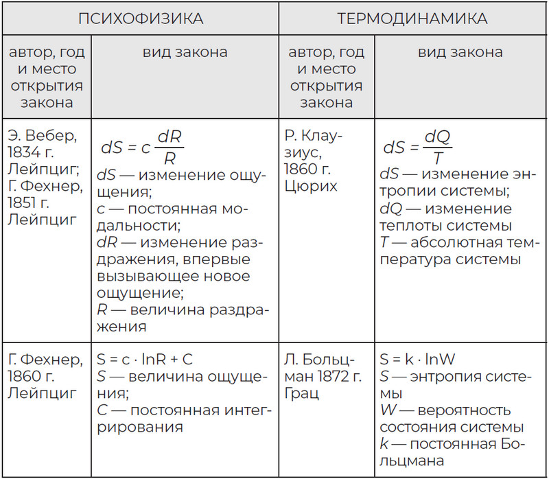 Табл. 1. 1Сравнительно-историческая характеристика создания основных законов в психофизике и термодинамике