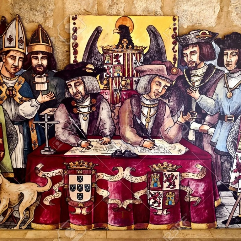 По этим договорам и согласно булле Папы Римского весь земной шар был поделен двумя параллелями между Испанией и Португалией. То есть две маленьких бедных страны, расположенные на задворках Европы, Испания и Португалия, поделили между собой весь мир. Исключением стали только христианские страны, которые дележу не подлежали, что стороны закрепили в договоре. Этому поразительному историческому факту не перестают удивляться современные люди.