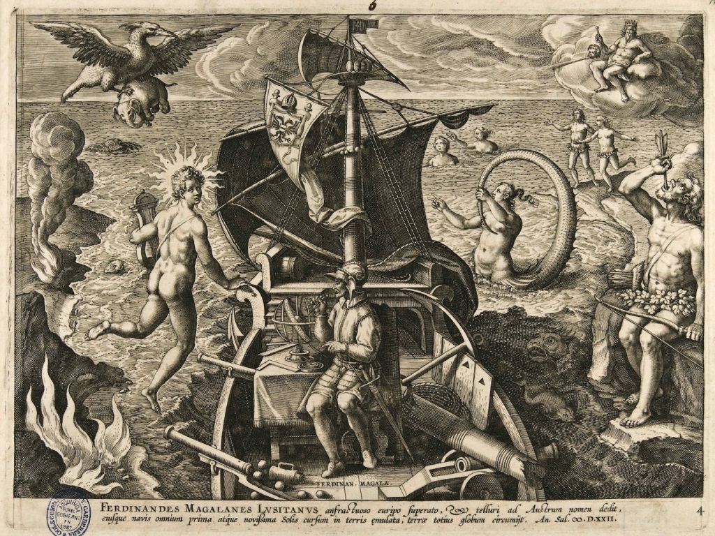 Аллегорическое изображение Магеллана, открывающего пролив, который будет носить его имя, созданное около 1592 года фламандским художником Йоханнесом Страданусом
