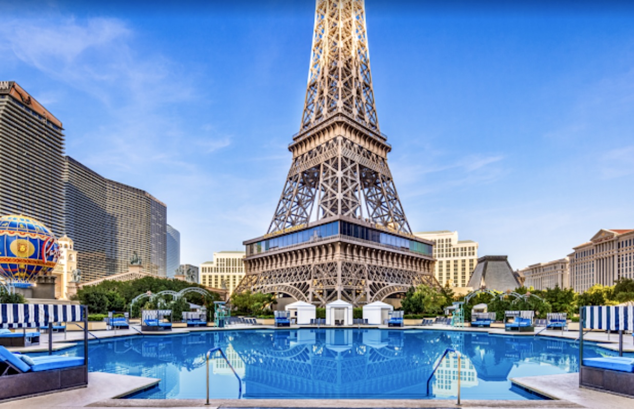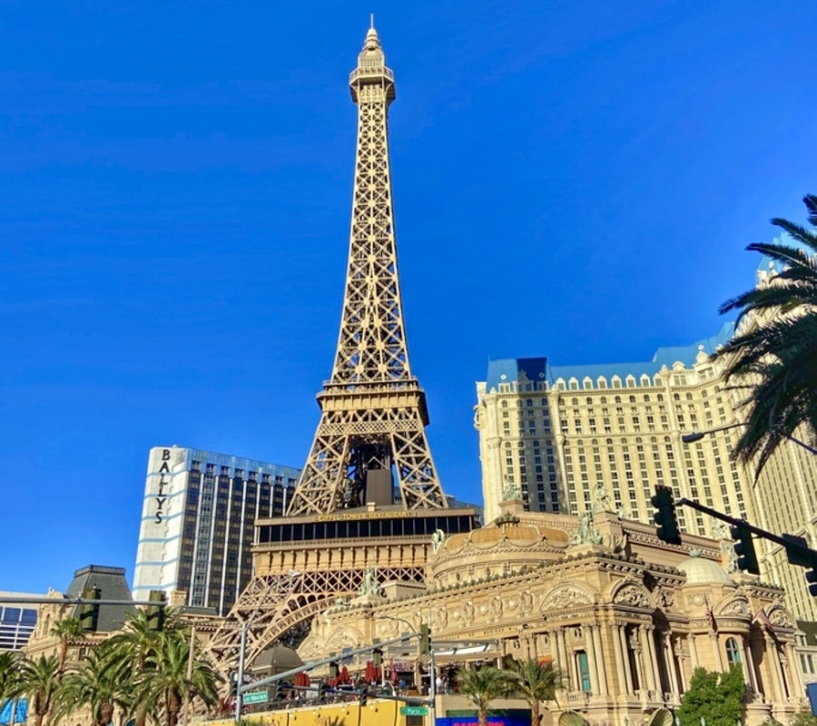 Отель-казино "Париж Лас-Вегас" – это величественный комплекс, созданный в парижском стиле, включая 3670 гостиничных номеров, казино площадью 8850 квадратных метров, театр на 1400 мест и множество ресторанов и ночных баров с небольшими концертными залами. Особую изюминку придает копия Эйфелевой башни высотой 164,5 метра, что в два раза меньше оригинала в Париже. На 11-м этаже расположился ресторан с панорамными видами на город и танцующие фонтаны Белладжо. В комплексе также находятся реплики других достопримечательностей Парижа, включая Триумфальную арку, Лувр, Парижский оперный театр и музей Орсе, а также целый подземный город с копиями парижских улиц.
