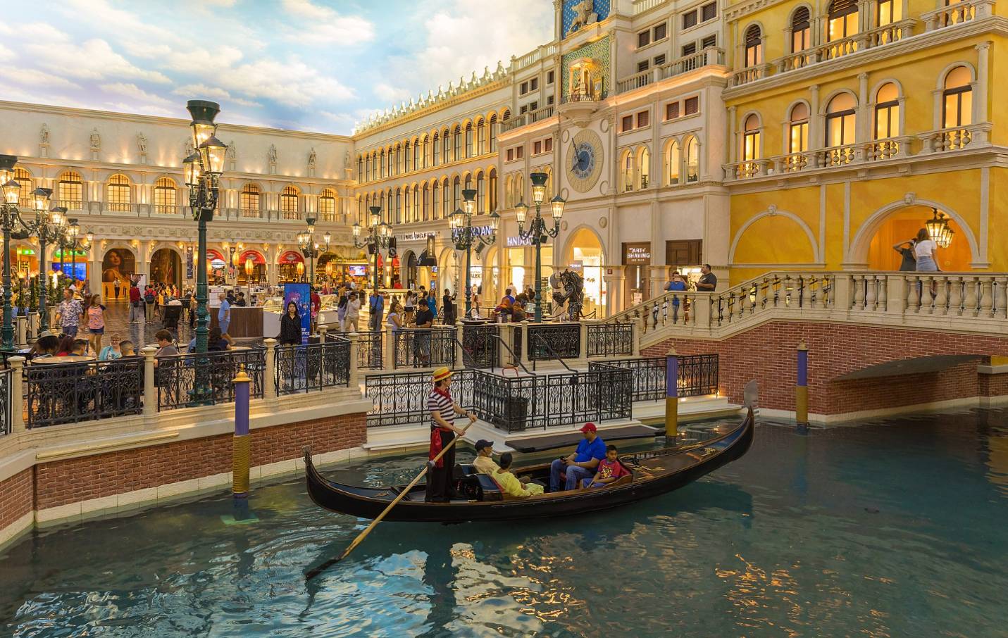 Венецианские достопримечательности гармонично вписались в небольшое пространство со множеством бутиков и ресторанчиков, где нашлось место и целым речным каналам, по которым туда-сюда спешат гондольеры с важным видом, развозящие гостей отеля.