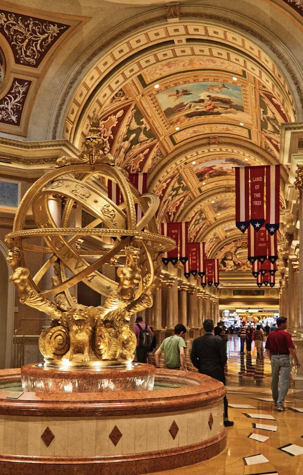 Из двадцати крупнейших отелей США семнадцать располагаются в Лас-Вегасе. Вершина этого великолепия – MGM Grand Hotel and Casino, величайший отель не только Вегаса, но и всего мира, обладающий роскошными 6800 номерами на тридцати этажах. Здесь вас ожидают четыре бассейна, три джакузи, спа-салон, изысканный спортивный бар и самое масштабное казино Лас-Вегаса, занимающее площадь в 15 800 квадратных метров. Каждый день через двери отеля и казино проходят около 70 000 человек, а 12 000 гостей остаются здесь на ночь.