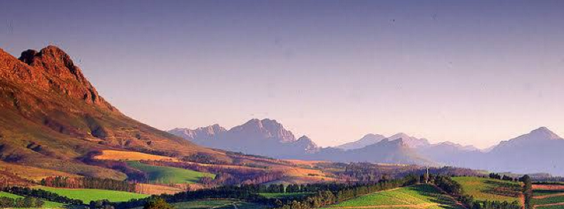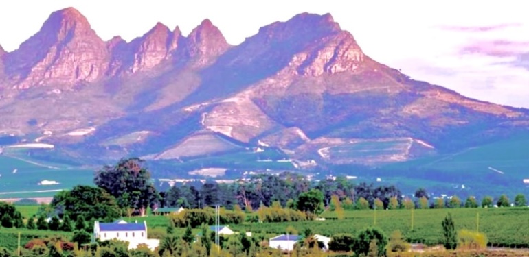 Капский голландский дом (ХХ век) на фоне склонов, сформированных 180 млн лет назад