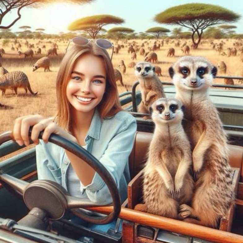 Немного «ожила» Кэти только тогда, когда Кайл, рейнджер, который вл сафари-машину, обратил внимание «экскурсантов» на окружающую их саванну. Среди пустынного ландшафта, поблескивающих на солнце отполированных ветром камней, разрушенных временем скал, на песчаных проплешинах, на островках мелкой щебнки, там и тут виднелись живые столбики: маленькие зверюшки, застыв в вертикальном положении, тревожно наблюдали за проезжающей в их поле зрения машиной. Можно было также подумать, что они таким образом приветствуют дорогих гостей.