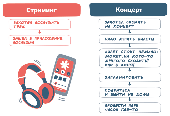 Что нужно, чтобы зарабатывать на концертахАртист зарабатывает на концертах, когда у него есть лояльная аудитория: люди, которые болеют за него и знают его как личность. Со стримингом всё иначе. Зайти в «Яндекс Музыку» и включить трек легко: дело пары минут. А вот чтобы пойти на концерт, нужно купить билет, запланировать выход в свет, подготовиться. Выйти из дома, наконец. Развлечений вокруг много. Человек должен выбрать вас, хотя может поиграть в приставку, посмотреть сериал или покататься на лыжах.