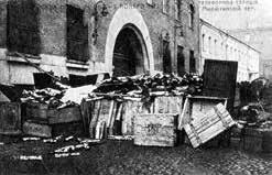 Баррикады у телефонной станции в Милютинском переулке в Москве. Осень 1917. Почтовая карточка