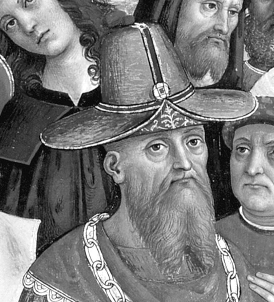 Фома Палеолог (1409–1465) – византийский деспот Мореи (1428–1460); после гибели во время осады Константинополя старшего брата, императора Константина XI Палеолога, стал законным наследником византийского престола; отец жены Ивана III, великой княгини московской Софии Палеолог, дед Василия III и прадед первого царя всея Руси Ивана IV Грозного. Фрагмент фрески Пинтуриккио, посвящённой прибытию папы Пия II в Анкону; Сиенский собор