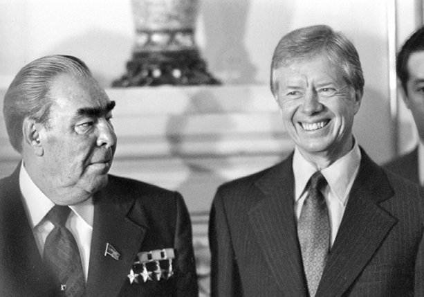 Встреча в Вене Генерального секретаря ЦК КПСС, Председателя Президиума Верховного Совета СССР Леонида Брежнева и президента Соединенных Штатов Америки Джимми Картера (15–18 июня 1979 г.). Леонид Брежнев (слева) и Джимми Картер перед встречей