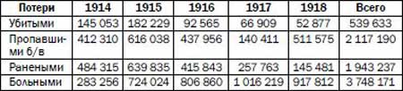 Таблица 6. Все потери вооруженных сил Австро-Венгрии