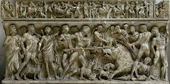 Калидонская охота. Рельеф римского саркофага. Мрамор. 190—200гг. Рим, Палаццо Дориа.