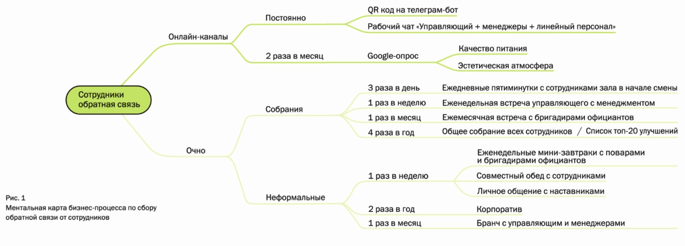 Сложную информацию я фиксирую и сразу систематизирую в виде ментальной карты (mindmap) – полезный инструмент визуализации мыслей. Кто не пользуется им, очень рекомендую. Программ множество, я использую Miro или MindX. Визуализация информации помогает мне быстрее находить и формировать правильные решения. Например, я использую майндмэп, чтобы визуализировать процессы (рис. 1).