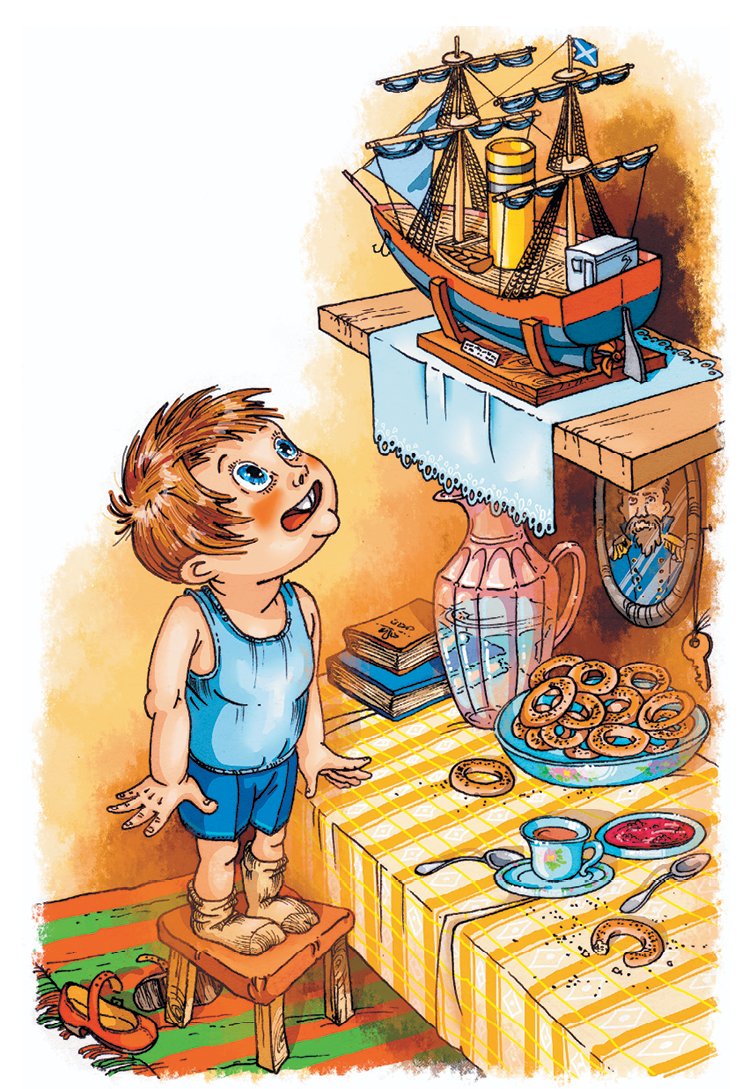 Пе́тя с ма́мой и с сёстрами жил в ве́рхнем этаже́, а в ни́жнем этаже́ жил учи́тель. Вот раз ма́ма пошла́ с де́вочками купа́ться. А Пе́-тя оста́лся оди́н стере́чь кварти́ру.