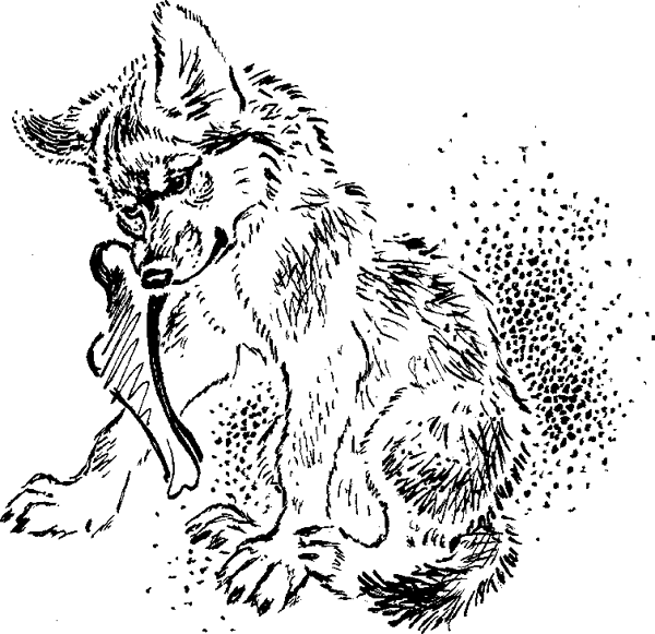 Я осторожно подошел, – волчонок стал на все четыре лапы и насторожился. Я его разглядел: какой он был урод! Он почти весь состоял из головы – как будто морда на четырех ножках, и морда эта вся состояла из пасти, а пасть – из зубов. Он на меня оскалился, и я увидел, что у него полон рот белых и острых, как гвозди, зубов. Тело было маленькое, с редкой бурой шерстью, как щетина, и сзади крысиный хвостик.