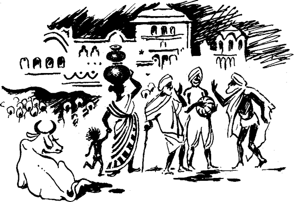 Ребята индусовы бросились матери помогать, стали прыгать, куда-то собираться. Слон тоже пошел; слониха и слоненок – с ними. Индус объясняет, что на речку. Мы тоже с ребятами.