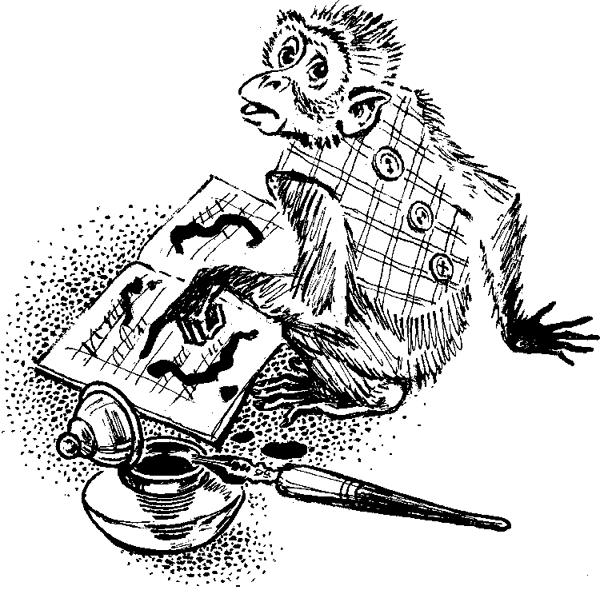 Когда я сел готовить уроки, я посадил Яшку на стол. Ему очень нравилось греться около лампы. Он дремал, как старичок на солнышке, покачивался и, прищурясь, глядел, как я тыкаю пером в чернила. Учитель у нас был строгий, и я чистенько написал страницу. Промокать не хотелось, чтобы не испортить. Оставил сохнуть. Прихожу и вижу: сидит Яков на тетради, макает пальчик в чернильницу, ворчит и выводит чернильные вавилоны по моему писанью. Ах ты, дрянь! Я чуть не заплакал с горя. Бросился на Яшку. Да куда! Он на занавески – все занавески чернилами перепачкал. Вот оно почему Юхименкин папа на них с Яшкой сердился…