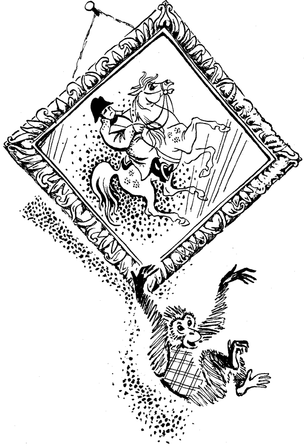И я начал ловить Яшку. Я к буфету – он на печь. Я его оттуда щеткой – он прыг на часы. Качнулись часы и стали. А Яшка уже на занавесках качается. Оттуда – на картину, картина покосилась, – я боялся, что Яшка кинется на висячую лампу.