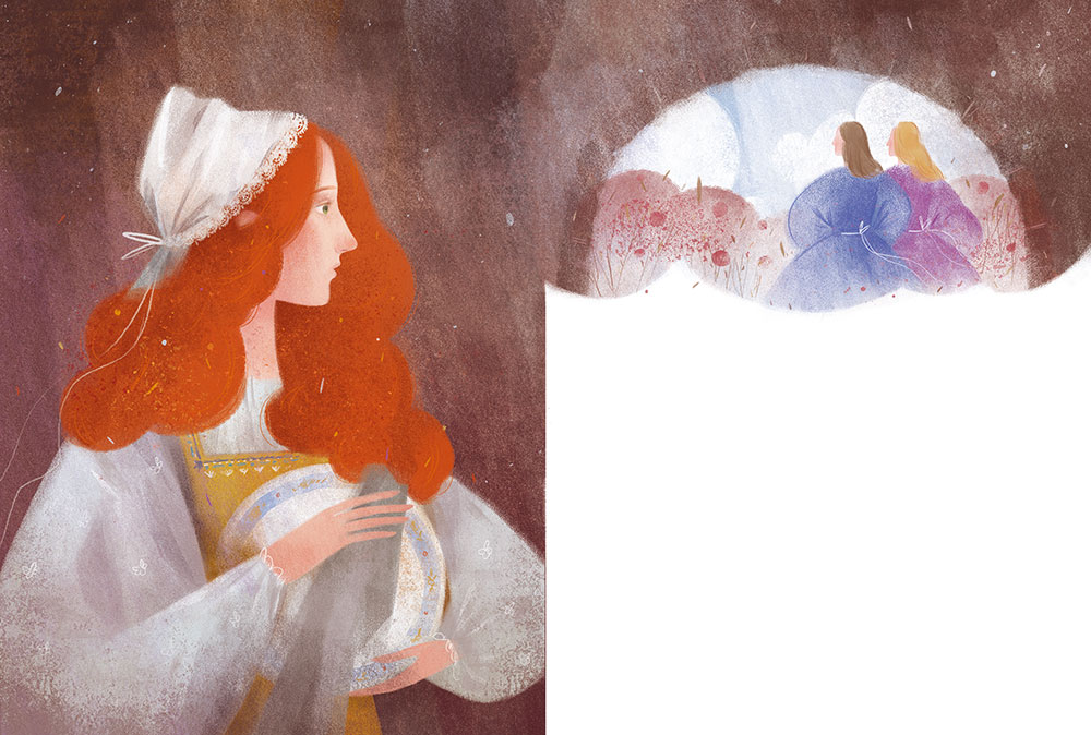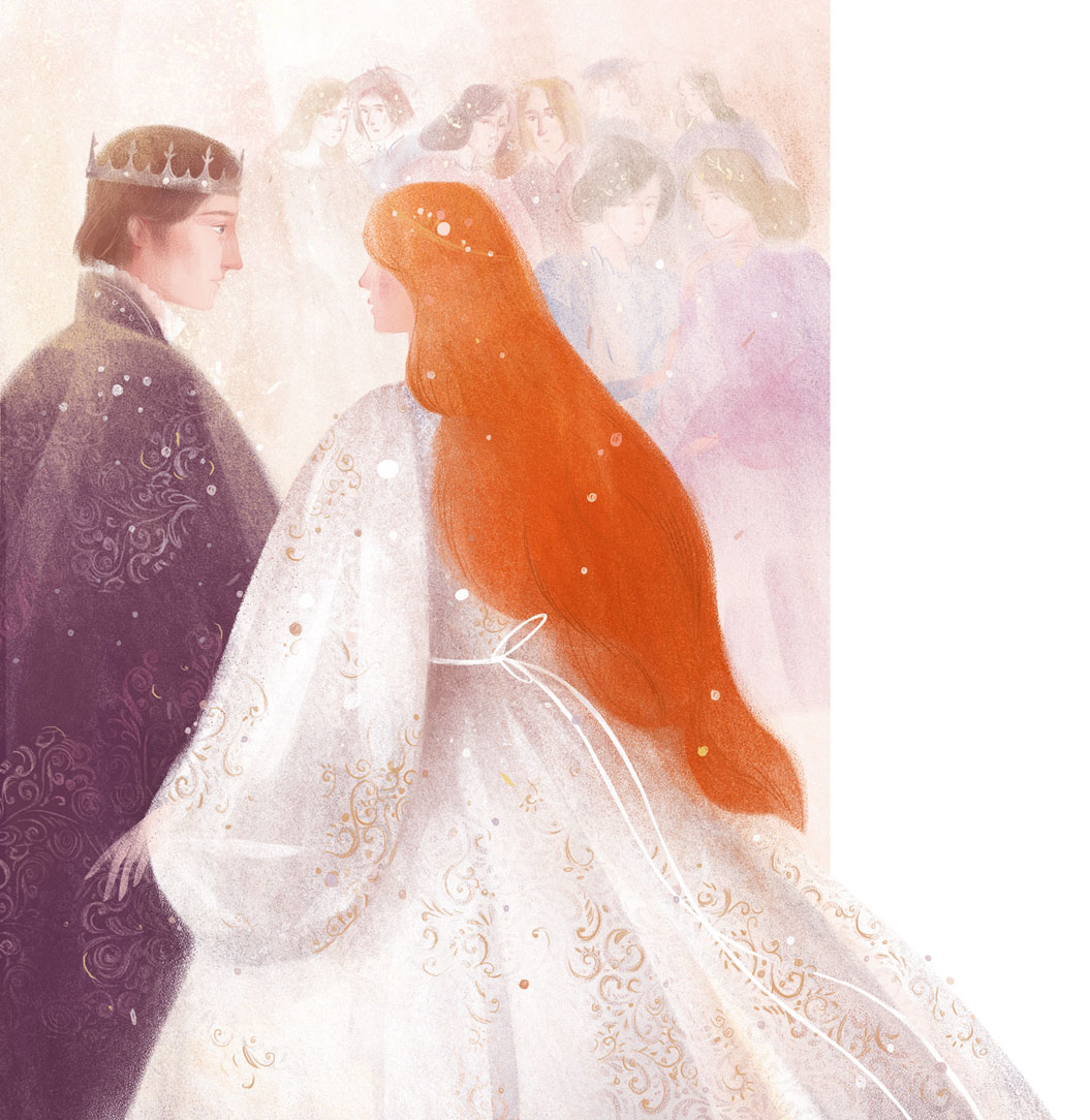 Принц места себе не находил; когда бы ни открывались двери, он думал, что явилась незнакомка, которую он так ждал. Наконец двери распахнулись, зашуршало шёлковое платье…
