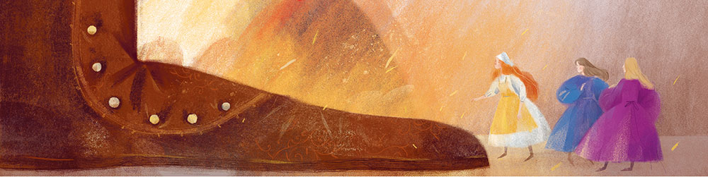 Утром, прежде чем ехать во дворец, сёстры стянули себе ноги так, что у обеих от боли слёзы полились, – а всё для того, чтобы ножка могла влезть в туфельку.