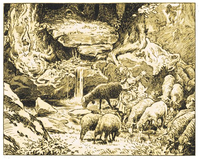 Внезапно у нее загудело в ушах, однако она не понимала, что это такое – слышать, и потому перепугалась пуще прежнего: зарыдала и задрожала; она уже хотела бежать прочь, но тут увидела, что из леса трусит к ней по тропинке белая овечка, а за ней другая… и третья… и четвертая, пятая, шестая… и вот уже у источника собралось целое стадо. У всех овец висели на шее колокольчики, и девочка слышала, как они звенели! Да это же отцовские овцы! А вот и белая пастушья собака, а за ней – овчар Барта! Девочка крикнула: «Барта!» – и кинулась к нему. Барта очень обрадовался, что барышня и говорит, и слышит; он подхватил ее на руки и поспешил к своему домику, который оказался совсем рядом. Там была пани Турыньская, убитая горем: ведь родители не знали, куда подевалась их дочурка и что с нею сталось. Они послали в лес своих людей, да и сам рыцарь Турыньский тоже разыскивал девочку, пока его жена томилась в ожидании в белом домике.