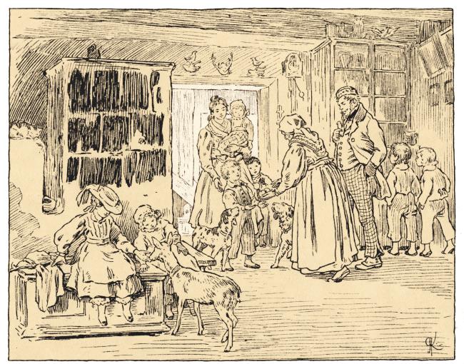 Тут распахнулась дверь и вошла молодая женщина в опрятном домашнем платье и белом чепчике; на руках у нее сидела маленькая русоволосая девочка. Хозяйка сердечно поздоровалась с гостями, и по ее открытому приветливому лицу было видно, что она им рада.
