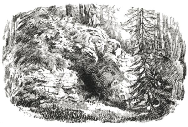 – Садитесь-ка сюда под деревья и постарайтесь не очень пачкаться! – говорила лесничиха, раскладывая еду. Дети расселись; собаки, не сводившие с них глаз, пристроились рядом.