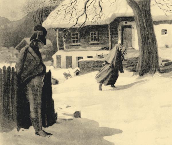 В то время стоял в деревне егерский полк, и один егерь начал Викторку донимать, ходить за ней неотступно. Она в церковь, он следом, да еще и стоит всю службу рядом – не на алтарь, а на нее глядит. Она на покос, он туда же; словом, куда она, туда и он. Люди говорили, будто он не в своем уме, а Викторка, услышав, как подруги о нем судачат, сказала: