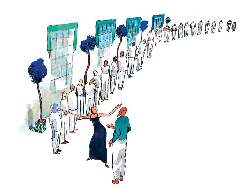 Вот и устроил однажды король, её отец, большой праздник и позвал на праздник и из ближних, и из дальних стран всех тех, кому припала охота жениться. Все приезжие были поставлены в ряд по своему достоинству и положению: сначала шли короли, потом герцоги, князья, графы и бароны, а затем уже и простые дворяне.