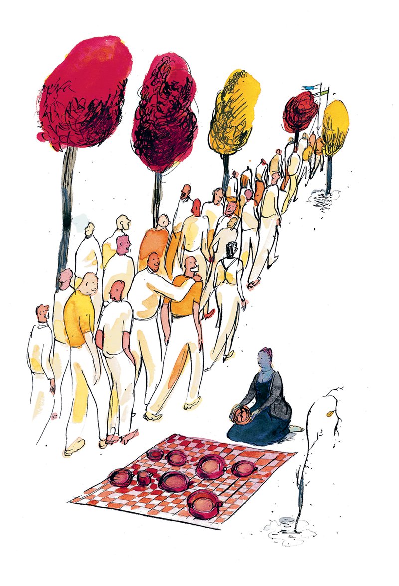 Слуги, проходя мимо неё, бросали ей время от времени крошки и остатки тех вкусных блюд, от которых до неё доносился запах, и она тщательно припрятывала всё это в свои горшочки и собиралась нести домой.