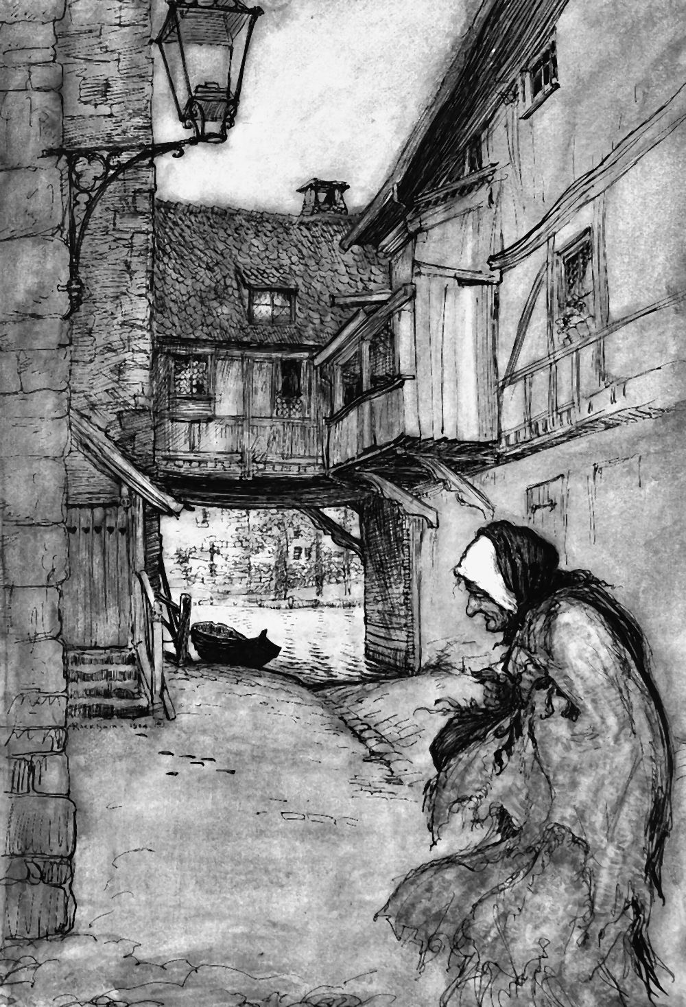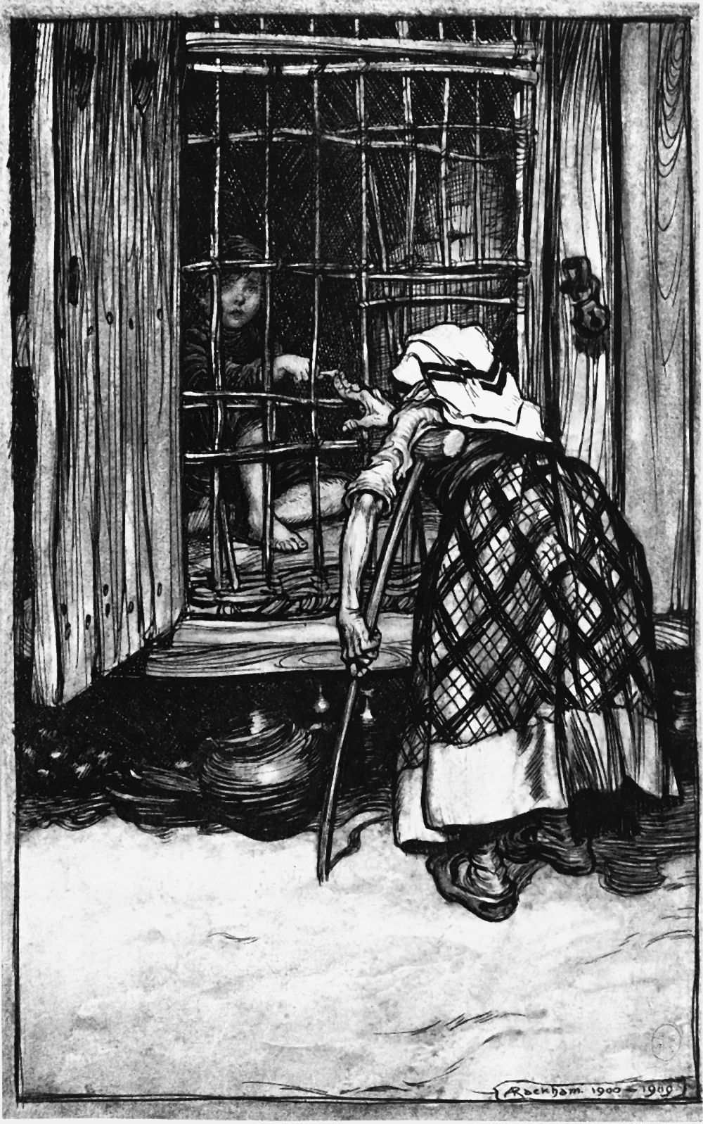 Nun ward dem armen Hänsel das beste Essen gekocht, aber Gretel bekam nichts als Krebsschalen. Jeden Morgen schlich die Alte zu dem Ställchen und rief: »Hänsel, streck deine Finger heraus, damit ich fühle, ob du bald fett bist.« Hänsel streckte ihr aber ein Knöchlein heraus, und die Alte, die trübe Augen hatte, konnte es nicht sehen und meinte, es wären Hänsels Finger, und verwunderte sich, daß er gar nicht fett werden wollte. Als vier Wochen herum waren und Hänsel immer mager blieb, da übernahm sie die Ungeduld und sie wollte nicht länger warten. »Heda, Gretel«, rief sie dem Mädchen zu, »sei flink und trag Wasser; Hänsel mag fett oder mager sein, morgen will ich ihn schlachten und kochen.« Ach, wie jammerte das arme Schwesterchen, als es das Wasser tragen mußte, und wie flossen ihm die Tränen über die Backen herunter! »Lieber Gott, hilf uns doch«, rief sie aus, »hätten uns nur die wilden Tiere im Wald gefressen, so wären wir doch zusammen gestorben.« »Spare nur dein Geplärre«, sagte die Alte, »es hilft dir alles nichts.«
