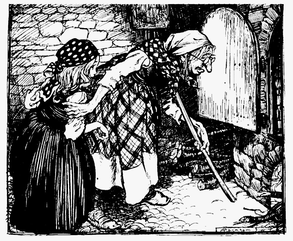 Früh morgens mußte Gretel heraus, den Kessel mit Wasser aufhängen und Feuer anzünden. »Erst wollen wir backen«, sagte die Alte, »ich habe den Backofen schon eingeheizt und den Teig geknetet!« Sie stieß das arme Gretel hinaus zu dem Backofen, aus dem die Feuerflammen schon herausschlugen. »Kriech hinein«, sagte die Hexe, »und sieh zu, ob schon recht eingeheizt ist, damit wir das Brot hineinschießen können.« Und wenn Gretel darin war, wollte sie den Ofen zumachen und Gretel sollte darin braten, und dann wollte sie's auch aufessen. Aber Gretel merkte, was sie im Sinn hatte, und sprach: »Ich weiß nicht, wie ich's machen soll; wie komm ich da hinein?« »Dumme Gans«, sagte die Alte, »die Öffnung ist groß genug, siehst du wohl, ich könnte selbst hinein«, krabbelte heran und steckte den Kopf in den Backofen. Da gab ihr Gretel einen Stoß, daß sie weit hineinfuhr, machte die eiserne Tür zu und schob den Riegel vor. Hu! da fing sie an zu heulen, ganz grauselig; aber Gretel lief fort und die gottlose Hexe mußte elendiglich verbrennen.