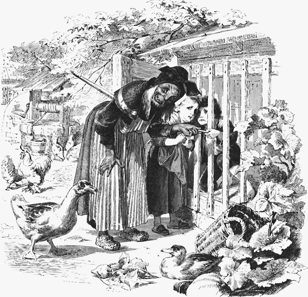 »Entchen, Entchen,da steht Gretel und Hänsel.Kein Steg und keine Brücke,nimm uns auf deinen weißen Rücken.«Das Entchen kam auch heran, und Hänsel setzte sich auf und bat sein Schwesterchen, sich zu ihm zu setzen. »Nein«, antwortete Gretel, »es wird dem Entchen zu schwer, es soll uns nacheinander hinüberbringen.« Das tat das gute Tierchen, und als sie glücklich drüben waren und ein Weilchen fortgingen, da kam ihnen der Wald immer bekannter und immer bekannter vor, und endlich erblickten sie von weitem ihres Vaters Haus. Da fingen sie an zu laufen, stürzten in die Stube hinein und fielen ihrem Vater um den Hals. Der Mann hatte keine frohe Stunde gehabt, seitdem er die Kinder im Walde gelassen hatte, die Frau aber war gestorben. Gretel schüttete sein Schürzchen aus, daß die Perlen und Edelsteine in der Stube herumsprangen, und Hänsel warf eine Handvoll nach der andern aus seiner Tasche dazu. Da hatten alle Sorgen ein Ende, und sie lebten in lauter Freude zusammen.