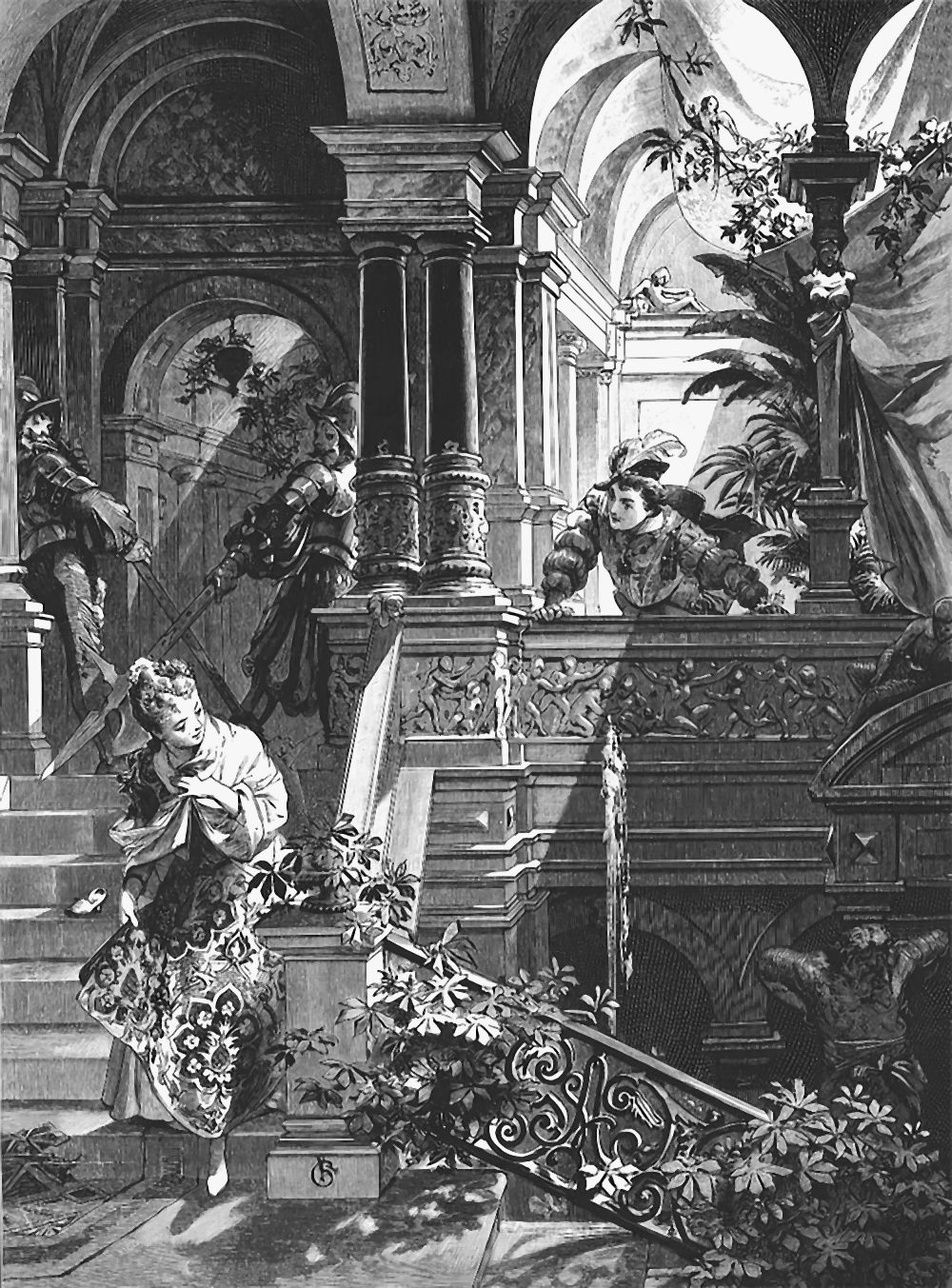 Es begab sich aber, daß der König ein Fest anstellte, das drei Tage dauern sollte, und wozu alle schönen Jungfrauen im Lande eingeladen wurden, damit sich sein Sohn eine Braut aussuchen möchte. Die zwei Stiefschwestern, als sie hörten, daß sie auch dabei erscheinen sollten, waren guter Dinge, riefen Aschenputtel und sprachen: »Kämm uns die Haare, bürste uns die Schuhe und mache uns die Schnallen fest, wir gehen zur Hochzeit auf des Königs Schloß.« Aschenputtel gehorchte, weinte aber, weil es auch gern zum Tanz mitgegangen wäre, und bat die Stiefmutter, sie möchte es ihm erlauben. »Du, Aschenputtel«, sprach sie, »bist voll Staub und Schmutz, und willst zur Hochzeit? Du hast keine Kleider und Schuhe, und willst tanzen!« Als es aber mit Bitten anhielt, sprach sie endlich: »Da habe ich dir eine Schüssel Linsen in die Asche geschüttet, wenn du die Linsen in zwei Stunden wieder ausgelesen hast, so sollst du mitgehen.« Das Mädchen ging durch die Hintertür nach dem Garten und rief: »Ihr zahmen Täubchen, ihr Turteltäubchen, all ihr Vöglein unter dem Himmel, kommt und helft mir lesen: