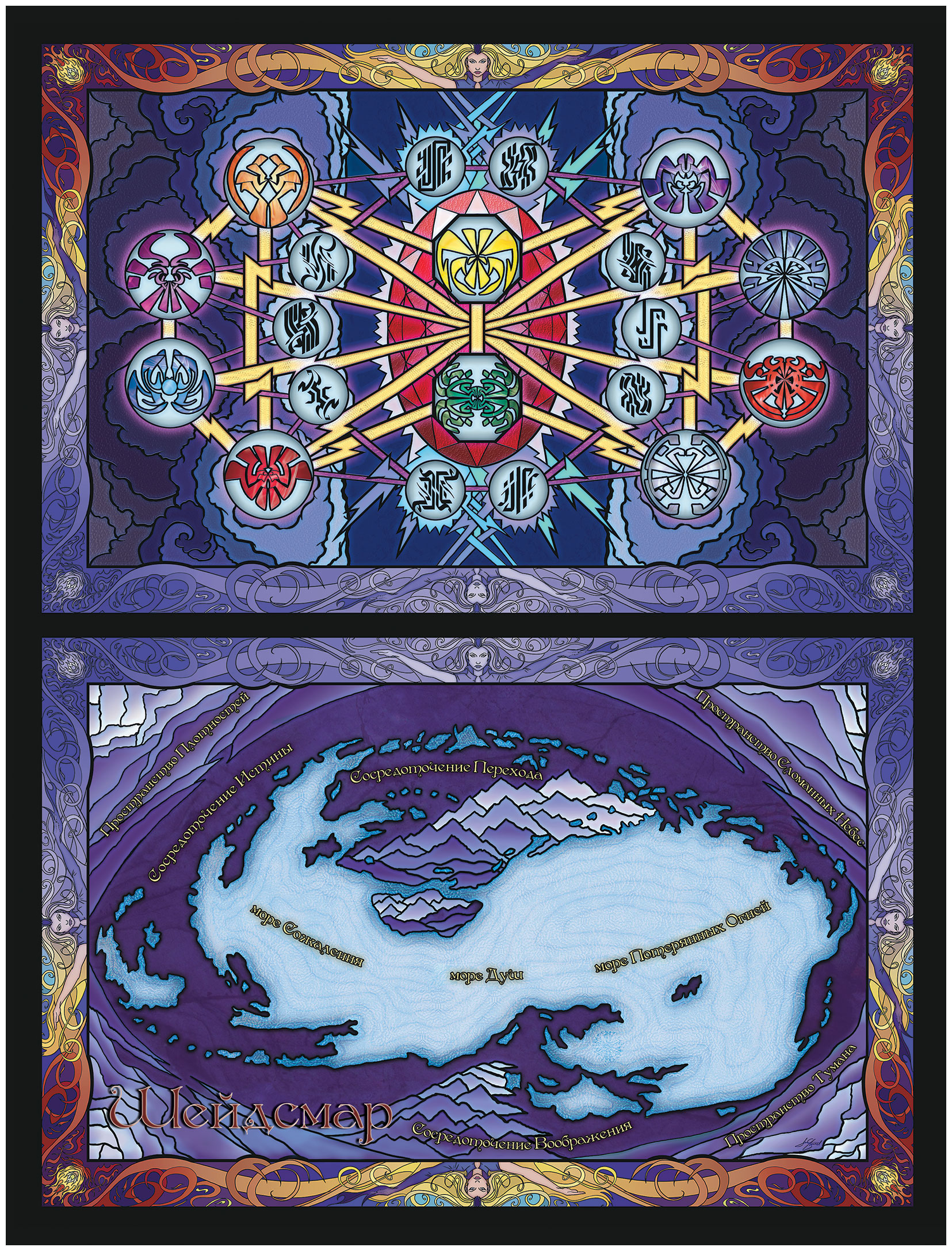 Для Сзета коридор и правда превратился в глубокую шахту, в которую он падал, а два стражника стояли на одной из ее стен. Не успели они опомниться, как Сзет ударил обоих ногами в лица и опрокинул. Быстро перевел взгляд на настоящий пол и связал себя с ним. Из убийцы продолжал струиться свет. Пол коридора опять стал низом, и он приземлился между двумя стражниками, хрустя одеждой, с которой сыпались хлопья инея. Сзет поднялся и начал призыв осколочного клинка.