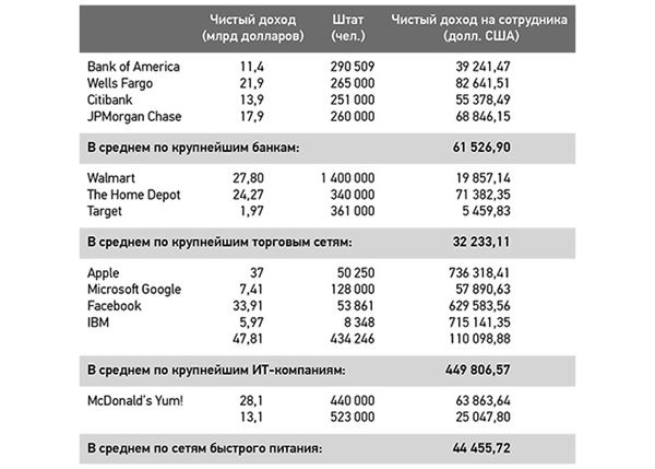 По сравнению с другими крупными компаниями, чьи акции торгуются на мировых биржах, технологические – настоящие чемпионы по генерации прибыли. Так, например, торговая сеть Walmart имеет капитализацию ниже, чем у крупнейшего интернет-магазина Alibaba, а ведь только в США в системе Walmart занято 1,4 млн человек.
