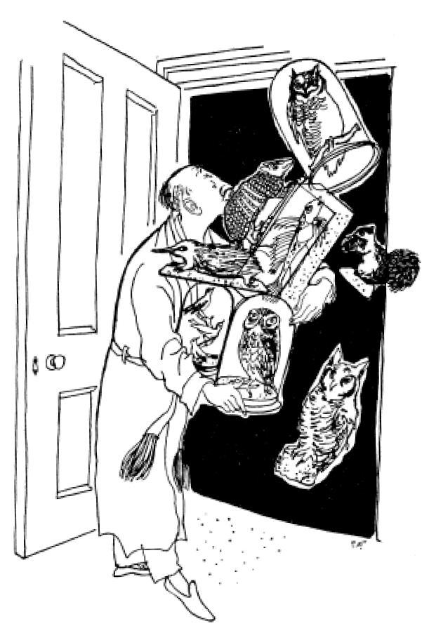 ‘You remember those stuffed owls and things in glass cases up in the front attic? He’s gone to bed with them. I don’t pretend I’m not worried.’