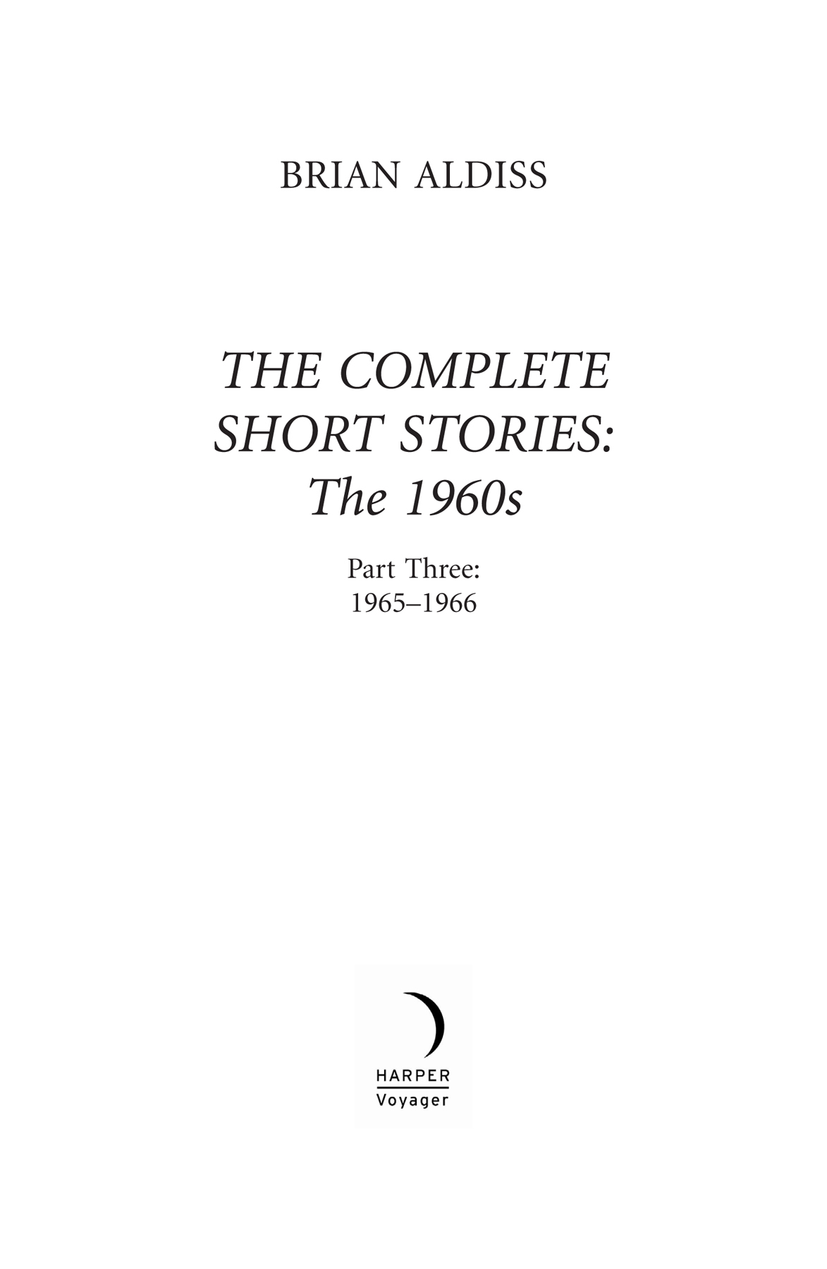 HarperVoyager an imprint of HarperCollinsPublishers Ltd 1 London Bridge Street London SE1 9GF www.harpervoyagerbooks.co.uk First published in Great Britain by HarperVoyager 2015 Stories from this collection have previously appeared in the following publications: The Saliva Tree and Other Strange Growths, SF Horizons (1965), Science Fantasy (1965), New Worlds SF (1965), Worlds of Tomorrow (1965), The Magazine of Fantasy and Science Fiction (1966), SF Impulse, Knight (1966). Copyright © Brian Aldiss 2015 Cover illustration © Shutterstock.com Cover design © HarperCollinsPublishers Ltd 2015 Brian Aldiss asserts the moral right to be identified as the author of this work. A catalogue copy of this book is available from the British Library. This novel is entirely a work of fiction. The names, characters and incidents portrayed in it are the work of the author’s imagination. Any resemblance to actual persons, living or dead, events or localities is entirely coincidental. All rights reserved under International and Pan-American Copyright Conventions. By payment of the required fees, you have been granted the non-exclusive, non-transferable right to access and read the text of this e-book on screen. No part of this text may be reproduced, transmitted, down-loaded, decompiled, reverse engineered, or stored in or introduced into any information storage and retrieval system, in any form or by any means, whether electronic or mechanical, now known or hereinafter invented, without the express written permission of HarperCollins. Source ISBN: 9780007482290 Ebook Edition © September 2015 ISBN: 9780008148959 Version: 2015-07-31