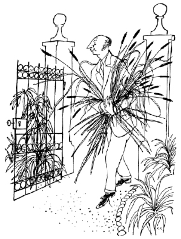 Uncle appeared at that instant through the side gate, bearing in his arms an enormous bundle of bulrushes, so that I never heard what effect Lawrence’s visit had upon his eccentricity.
